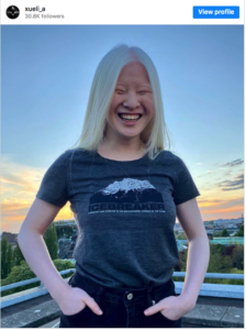 People with albinism often face discrimination and stigma, and in some parts of the world, even violence. Xueli has said she feels fortunate she was “only abandoned.” She also speaks out against the way albino models are often portrayed as angels or ghosts, saying it makes her sad.