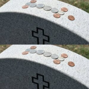 The cold metal glints in the fading light, resting silently atop a weathered gravestone. Each coin tells a story—of sacrifice, camaraderie, and remembrance. Visitors leave these small…