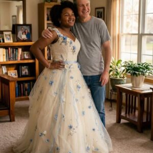 Grief sat at our kitchen table and learned to sew. My father, who once fixed leaking pipes, now wrestled with my dead mother’s wedding dress, turning memories…